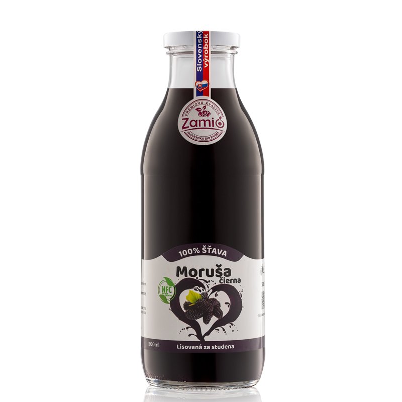 100% šťava z prvého priameho lisovania plodov moruše čiernej (Morus nigra lat.)