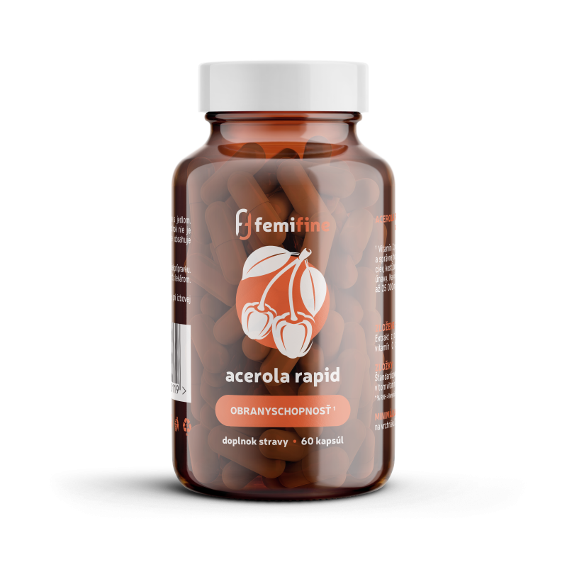 Prírodný vitamín C získaný z plodov Aceroly. Na 500mg extraktu bolo použitých 25 g plodov aceroly. Denná dávka 500mg extraktu z aceroly obsahuje 250g čisto prírodného vitamínu C vhodného aj pre vegetariánov a vegánov. Obal kapsuly je vytvorený z HPMC celulózy, vhodný aj pre alergikov.