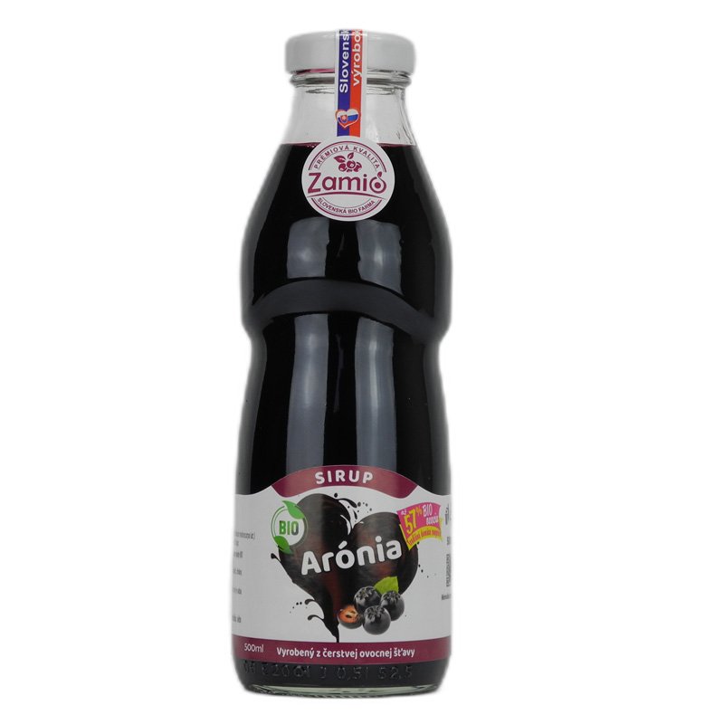 Arónia sirup vyrobený najmodernejším spôsobom výroby zo starostlivo vybraných BIO arónie čiernoplodej (Aronia melanocarpa L.) tej najvyššej kvality z certifikovaných ekologických plantáží.