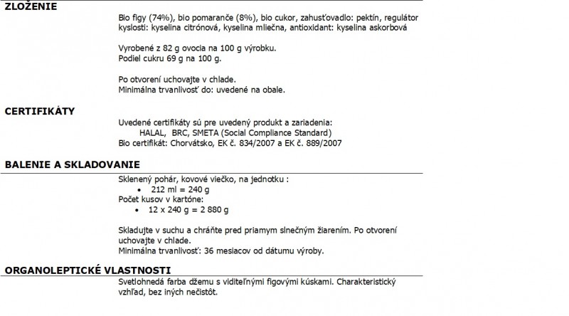 Bio figový džem s pomarančom, s 82 % podielom ovocia.