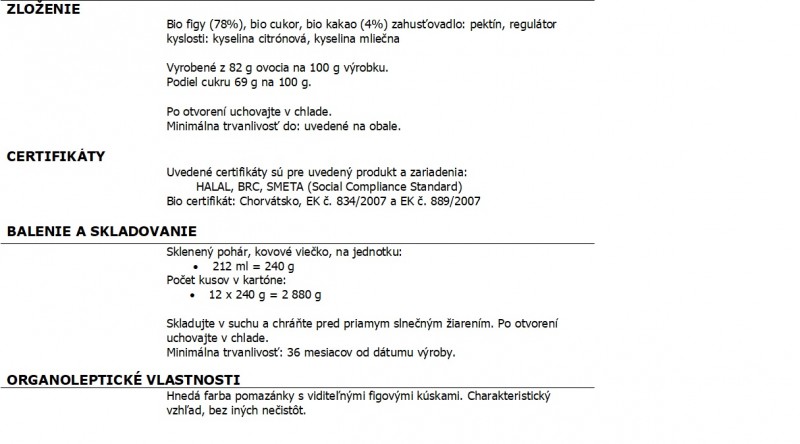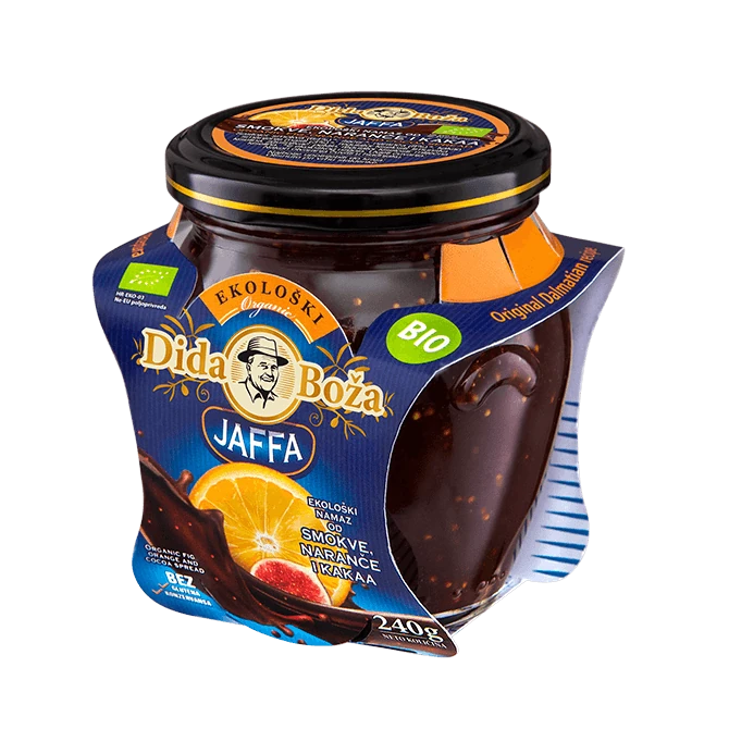BIO JAFFA - organická nátierka s figami, pomarančmi a kakaom, s podielom 72% ovocia, 240g.