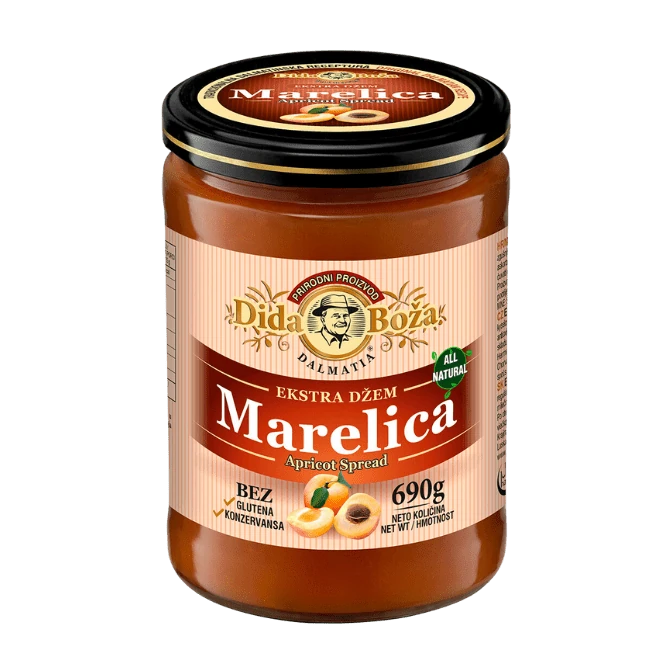 Marhuľový džem s podielom 82 % ovocia, 690g.
