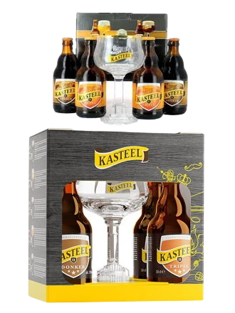 1x pohár, 2x Kasteel Donker, 2x Kasteel Triple.