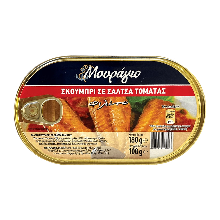 Zloženie: Makrela 60%, paradaj.omáčka 40%, voda, paradajkový pretlak, slnečnicový olej, soľ, cukor, kukuričný a zemiakový škrob, korenie.