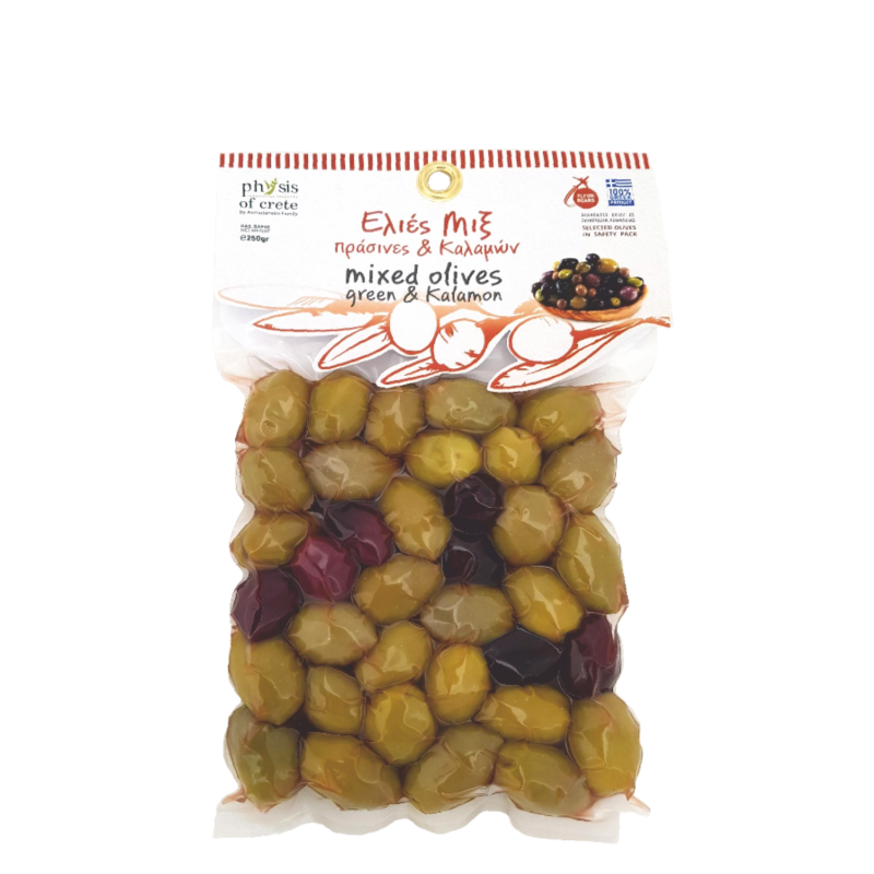 Olivy MIX zelené a čierne KALAMATA vákum 250g