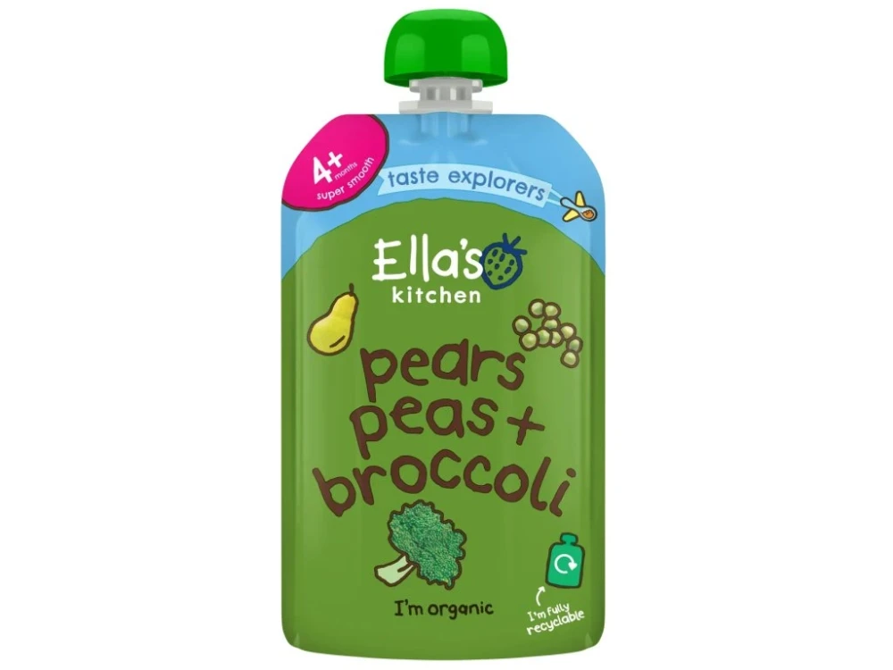 Detská výživa od 4 mesiacov Len rozmixované ovocie a zelenina s prirodzene sa vyskytujúcim cukrom. Dobrý deň! Som 100% prírodné ovocné pyré z Ella's Kitchen plné chutného 100% bio pyré z hrušiek, hrášku, brokolice + troška citrónovej šťavy - bez pridania čohokoľvek iného, dokonca ani vody.