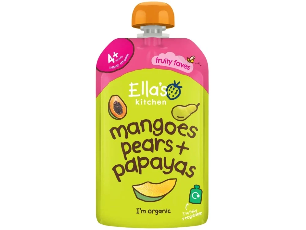 - Ovocná kapsička Ella's Kitchen Mango, hrušky a papája, BIO 120g