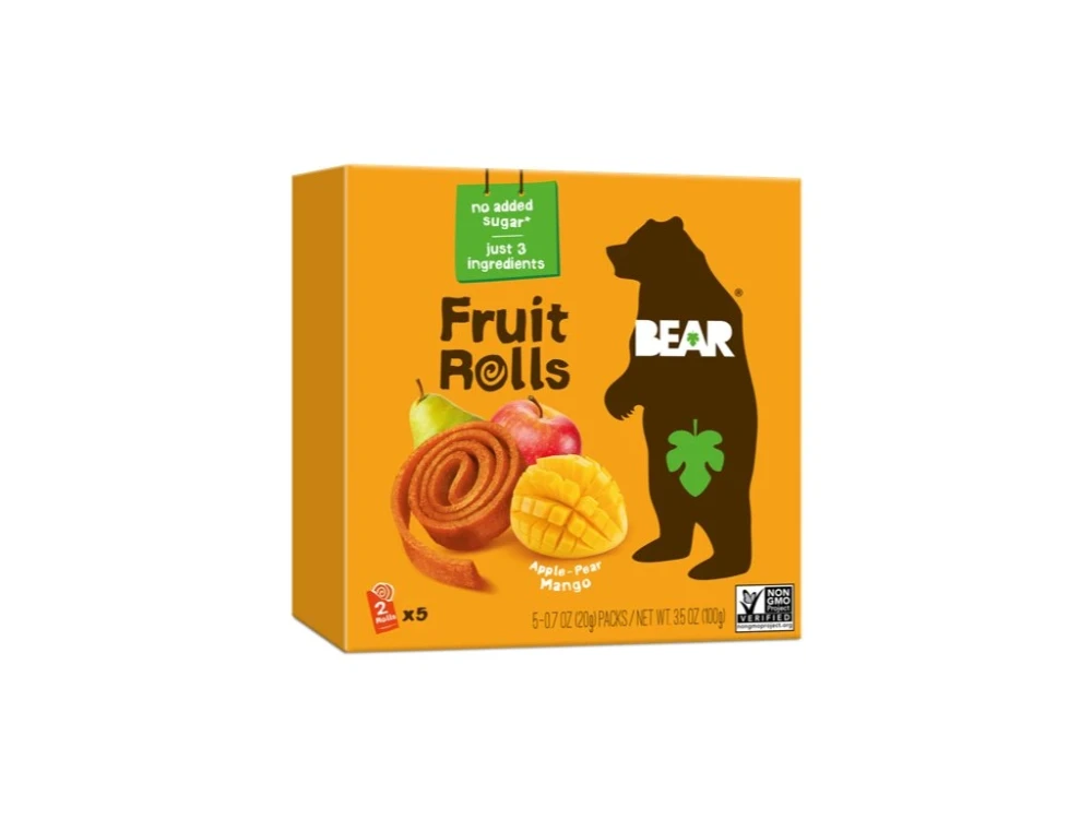 Ovocné rolky s mangom vás prinútia snívať o exotických miestach. Sladká tropická chuť šťavnatého manga vám pripomenie dokonalý letný deň. BEAR ovocné rolky obsahujú len prirodzene sa vyskytujúce cukry. Ovocný snack, ktorý si zachováva všetky výživné hodnoty ovocia. Dobrý zdroj vlákniny, vitamínov a minerálov. Je to ideálna ovocná desiata na akúkoľvek dennú dobu, do školy, domov alebo na cesty!