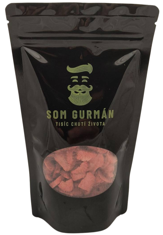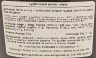 100% jahody- lyofilizované (mrazom sušené) jahodové plátky.