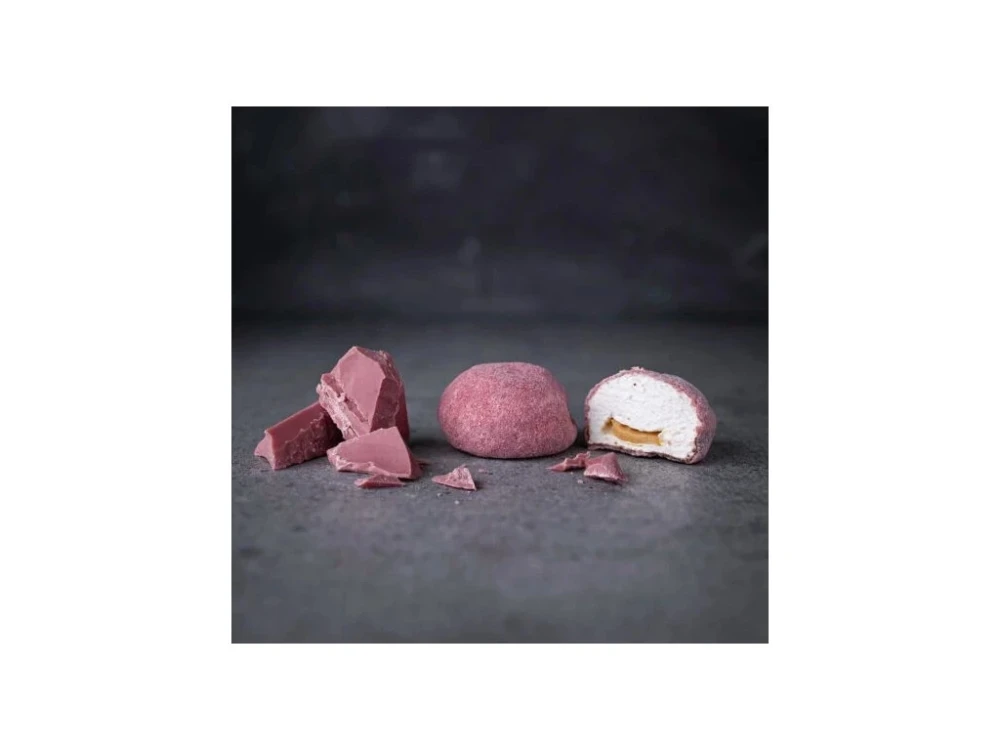 Ruby čokoláda + bohatá malina sú marshmallow cukríky plnené sladkým karamelom a obalené vo výrazne ovocnej ruby čokoláde.